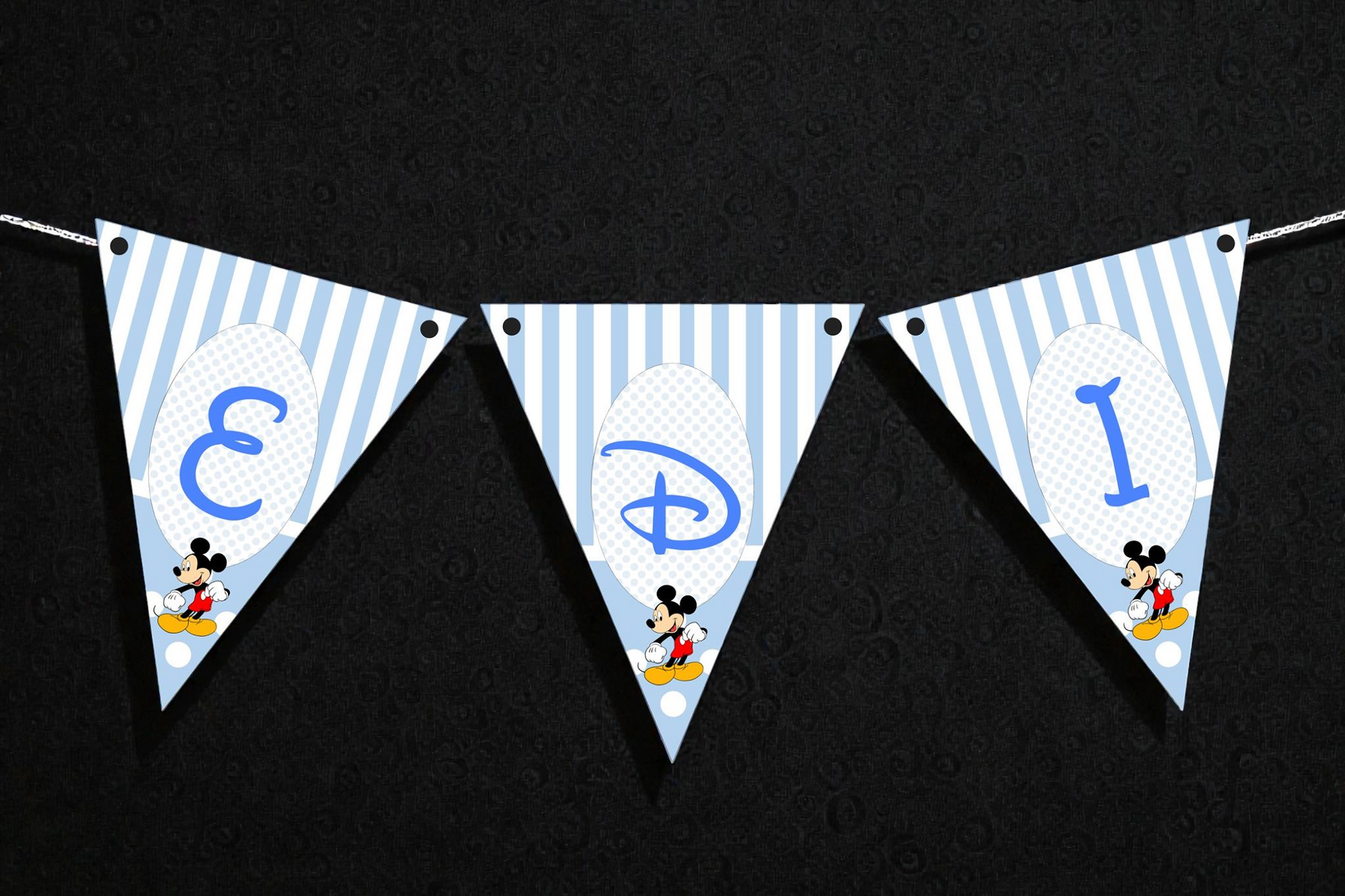 Bannerul poate fi personalizat cu numele copilașului și realizat în orice tematică, cu personaje, culori și stiluri alese de tine. Este ideal pentru decorarea mesei festive, candy barului sau colțului foto.