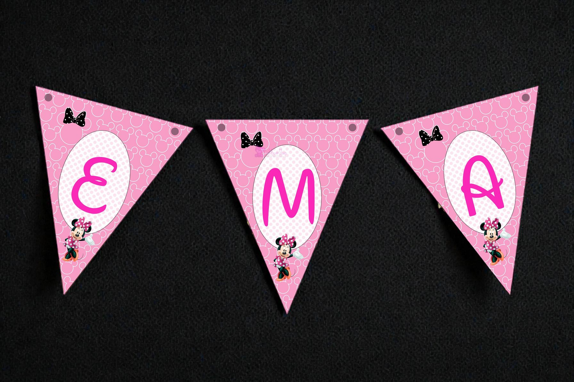 Bannerul poate fi personalizat cu numele copilașului și realizat în orice tematică, cu personaje, culori și stiluri alese de tine. Este ideal pentru decorarea mesei festive, candy barului sau colțului foto.