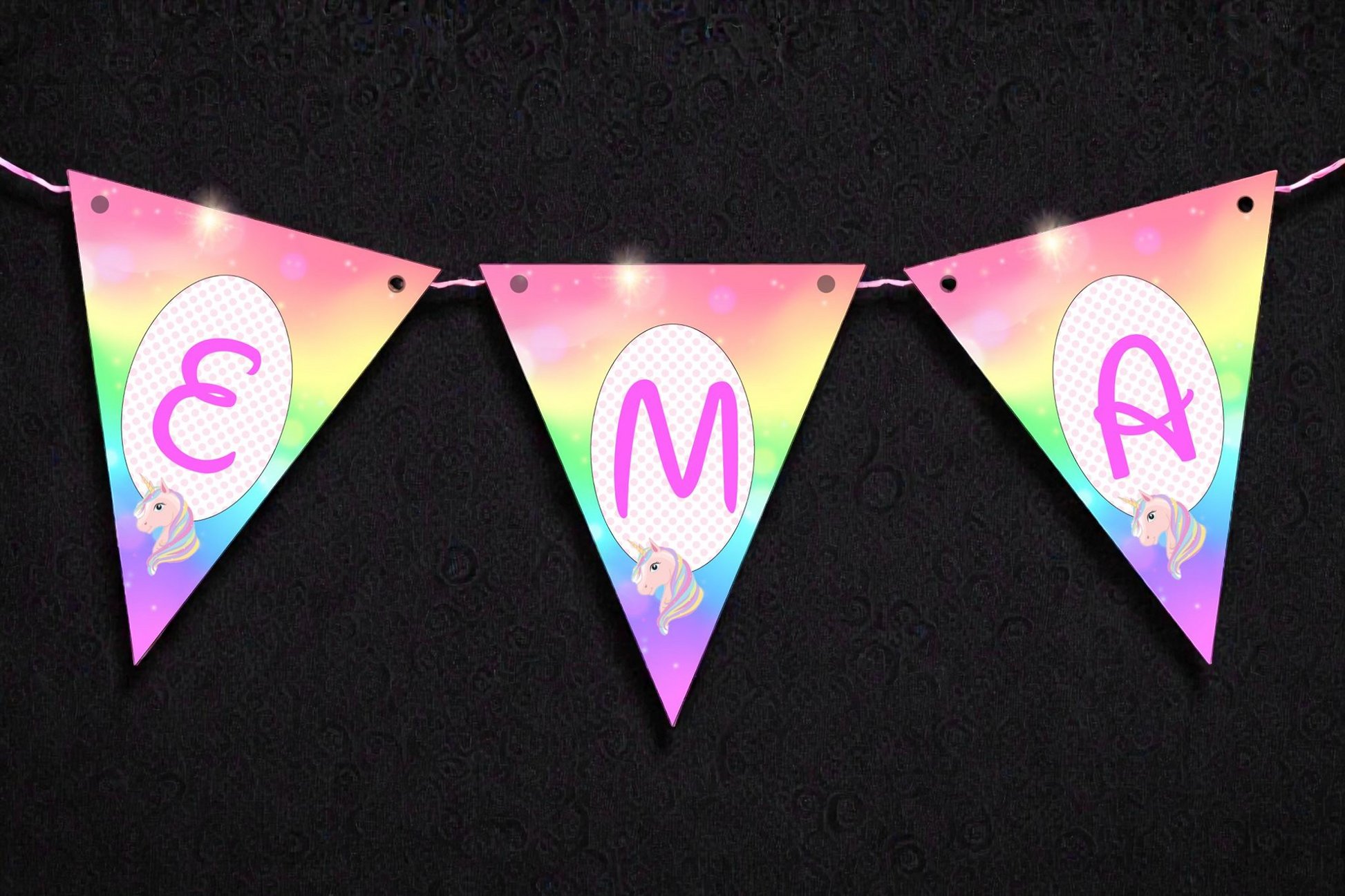 Bannerul poate fi personalizat cu numele copilașului și realizat în orice tematică, cu personaje, culori și stiluri alese de tine. Este ideal pentru decorarea mesei festive, candy barului sau colțului foto.