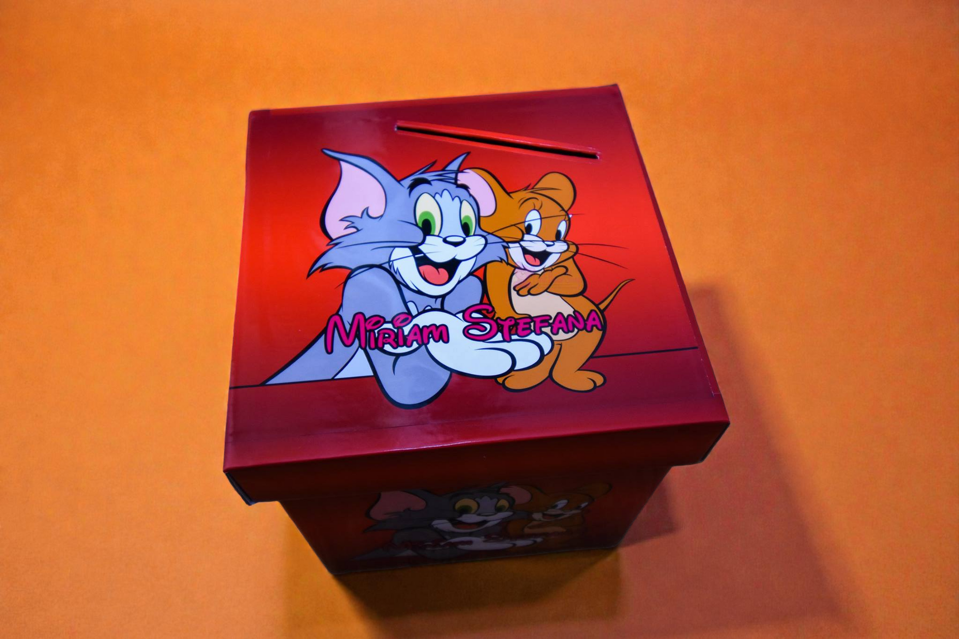 Completează decorul botezului cu o cutie de dar personalizată, realizată manual din carton de calitate, creată special pentru a păstra în siguranță plicurile cu bani oferite de invitați. Fiecare cutie este personalizată prin aplicarea de hârtie foto adezivă, lipită cu atenție pe carton, pentru un aspect elegant și rezistent.