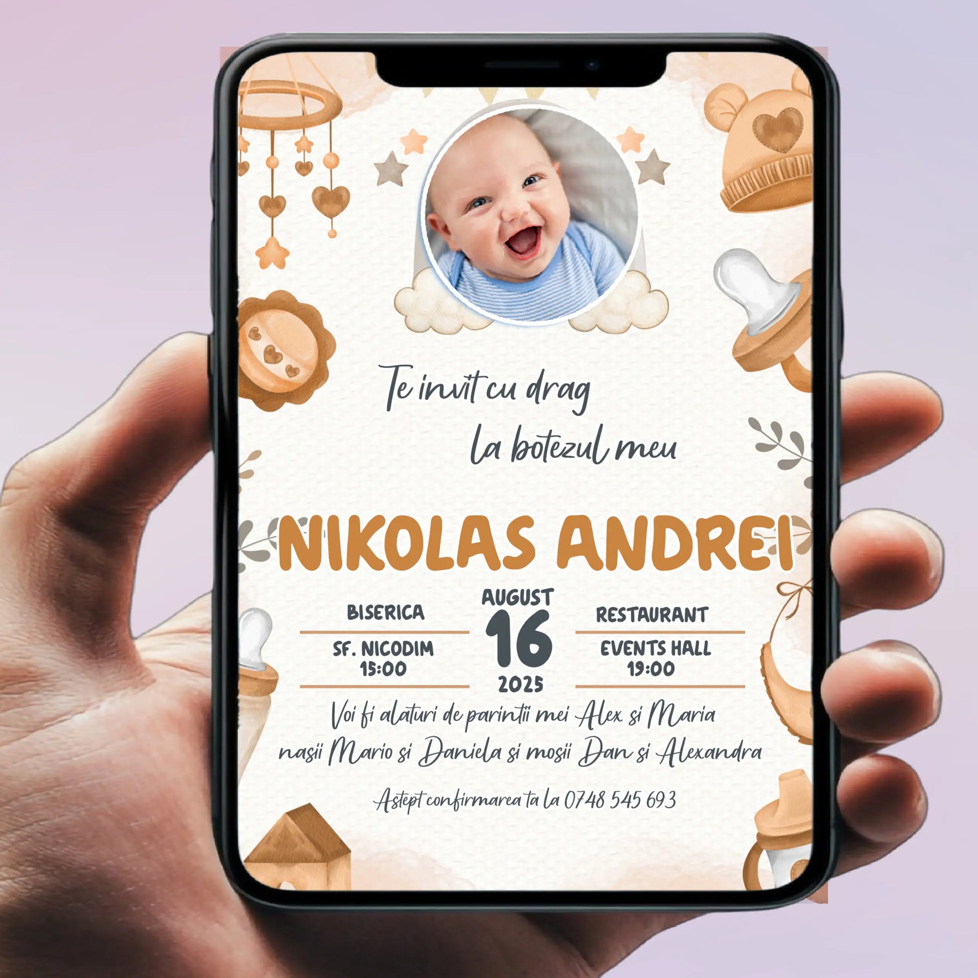 Invitație digitală personalizată pentru botez – modernă și ușor de trimis