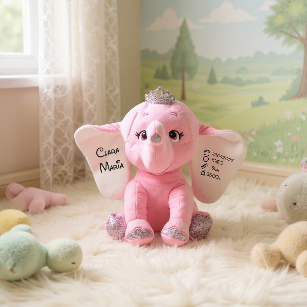 Elefant de pluș personalizat – o amintire pufoasă pentru cele mai frumoase începuturi