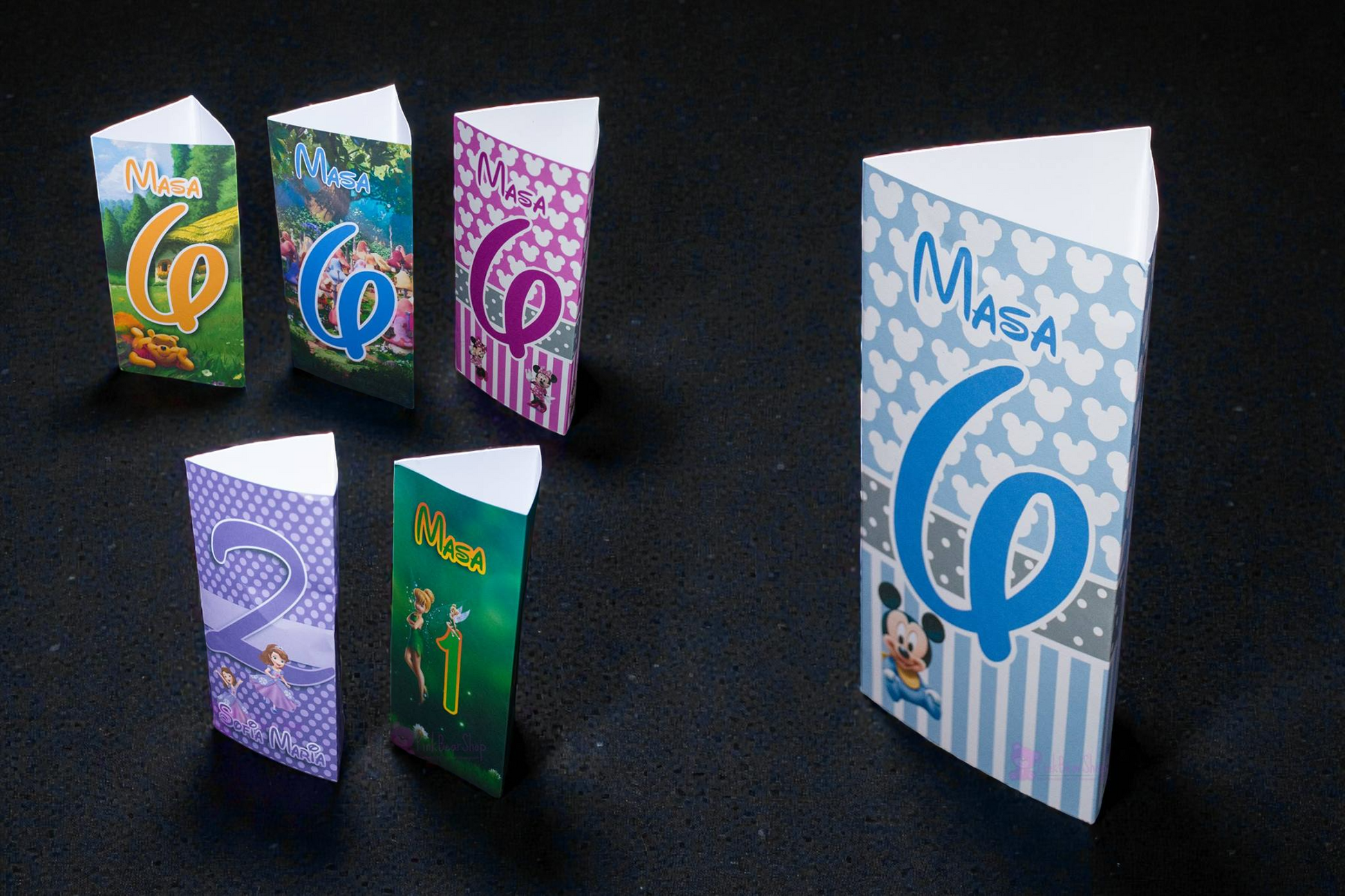Număr de masă cu meniu personalizat pentru botez, realizat din hârtie foto cartonată, cu design elegant și formă de triunghi, ideal pentru aranjarea meselor la eveniment. Produsul este personalizat cu meniul de mâncare și băuturi, iar pe cealaltă parte poate fi trecut numărul mesei, pentru o organizare practică și un decor armonios.