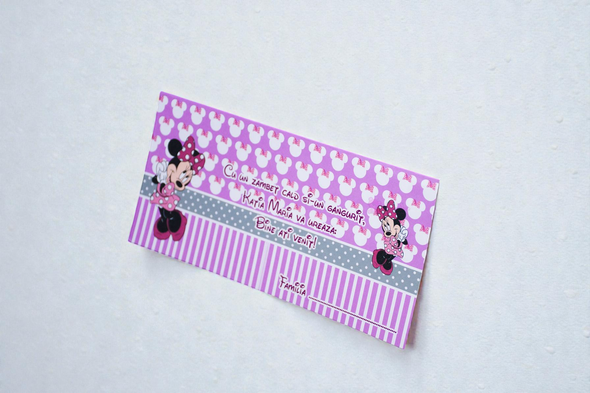 Poate fi personalizat cu numele bebelușului, data evenimentului și un design potrivit botezului, ilustrat cu personaje simpatice sau elemente delicate. Fiecare plic este realizat individual, cu atenție la detalii, pentru un aspect elegant și bine finisat.